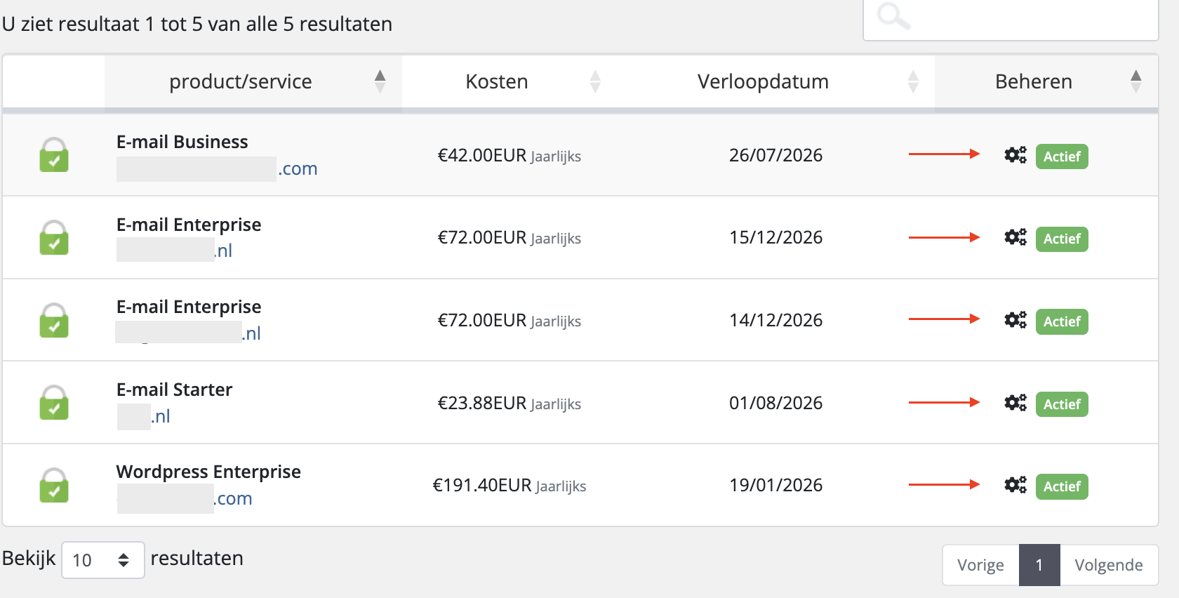 Je komt nu in een nieuw scherm met informatie over het hostingpakket.