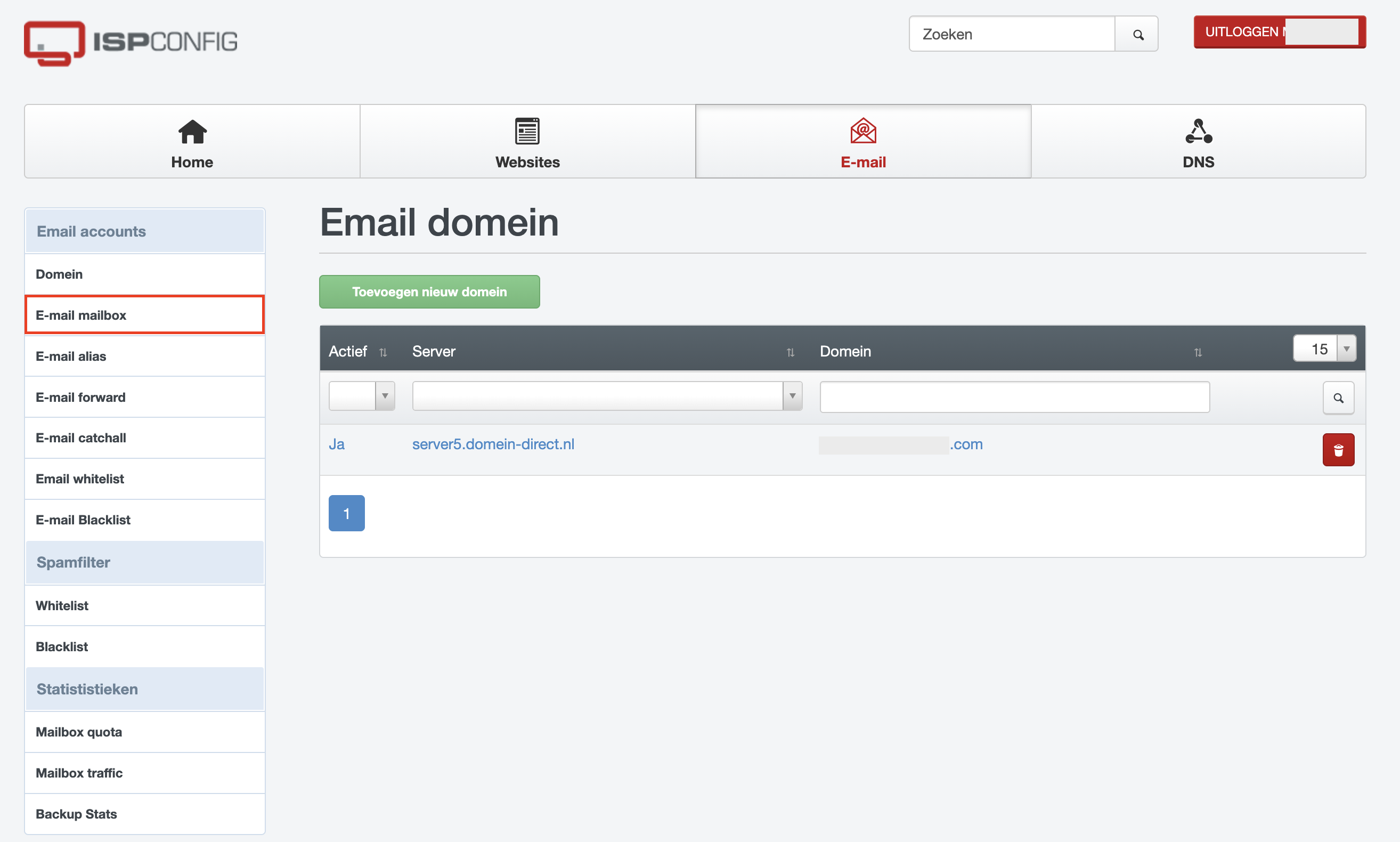Klik op de tab 'E-mail mailbox' in het menu aan de linkerkant.