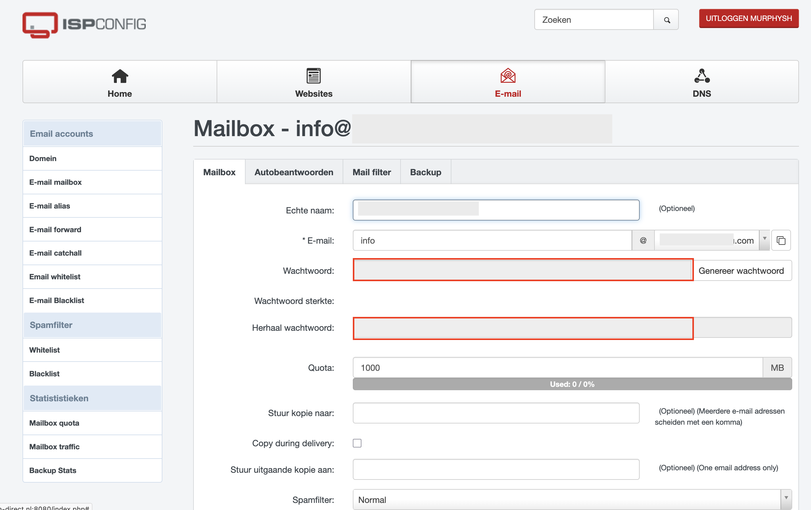 te herhalen. Je kunt hier ook de quota van de mailbox wijzigen en eventueel