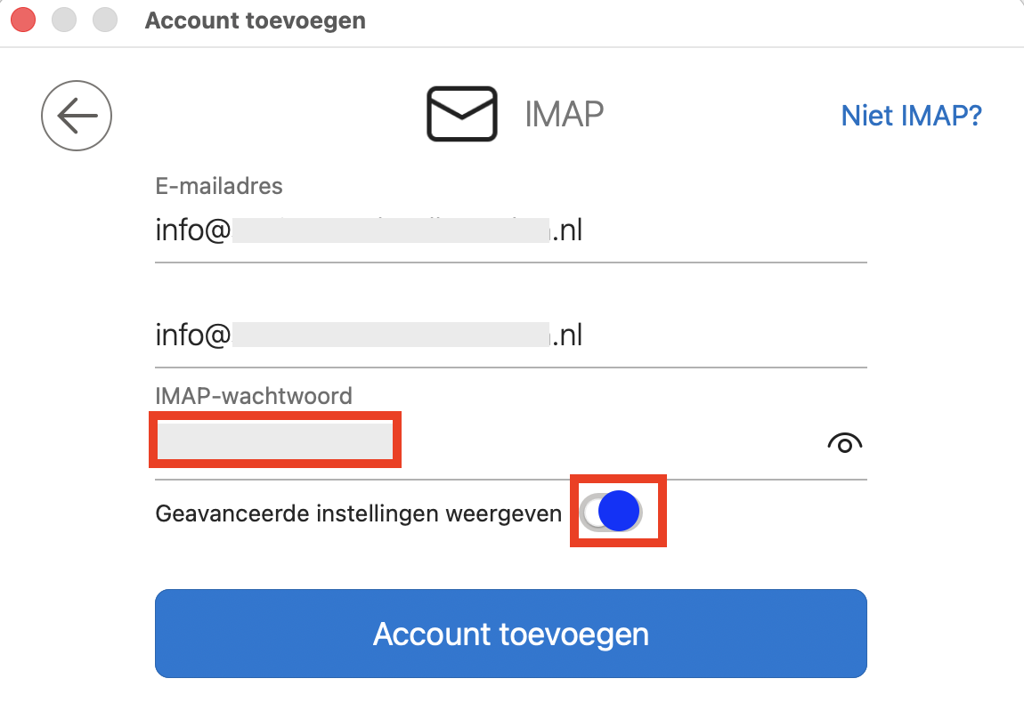 - vul bij SMTP-wachtwoord het wachtwoord in dat hoort bij het e-mailadres