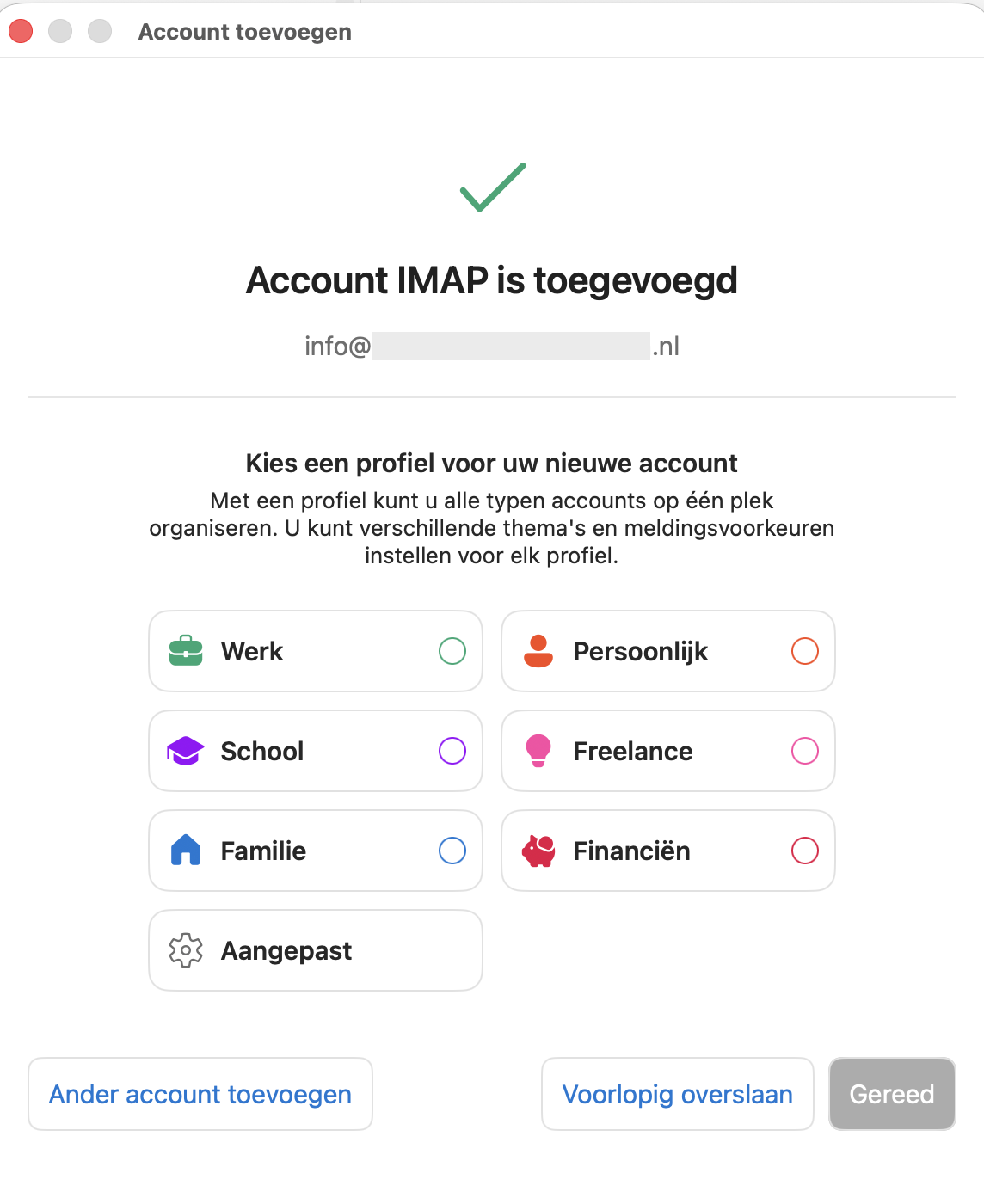 Je kunt nog kiezen of je het mailaccount wilt onderbrengen in een profiel